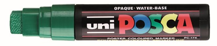 KezdőlapIrodaszerekÍrószerekMarkerekDekormarker, 15 mm, vágott, UNI "Posca PC-17K", zöld
